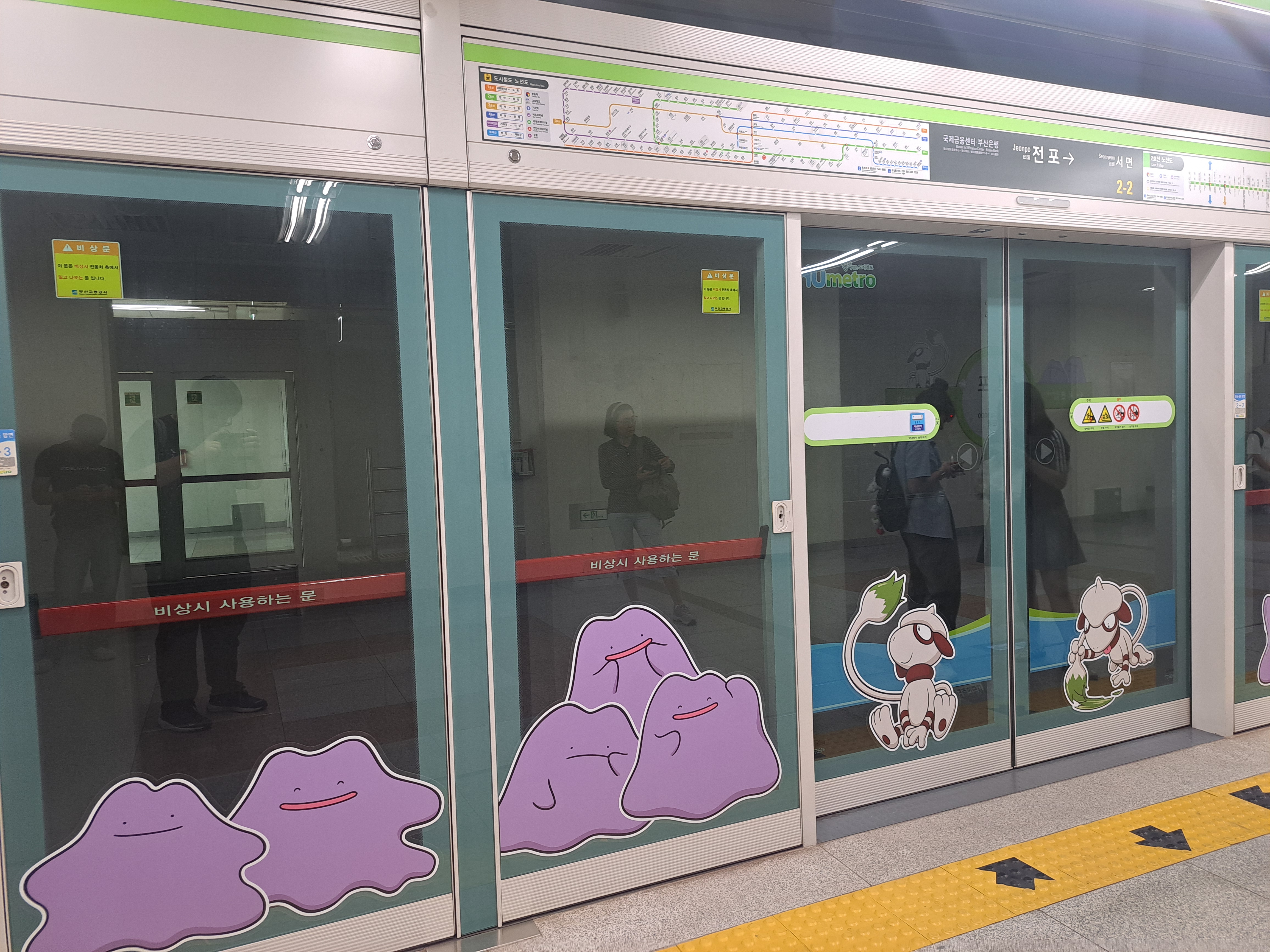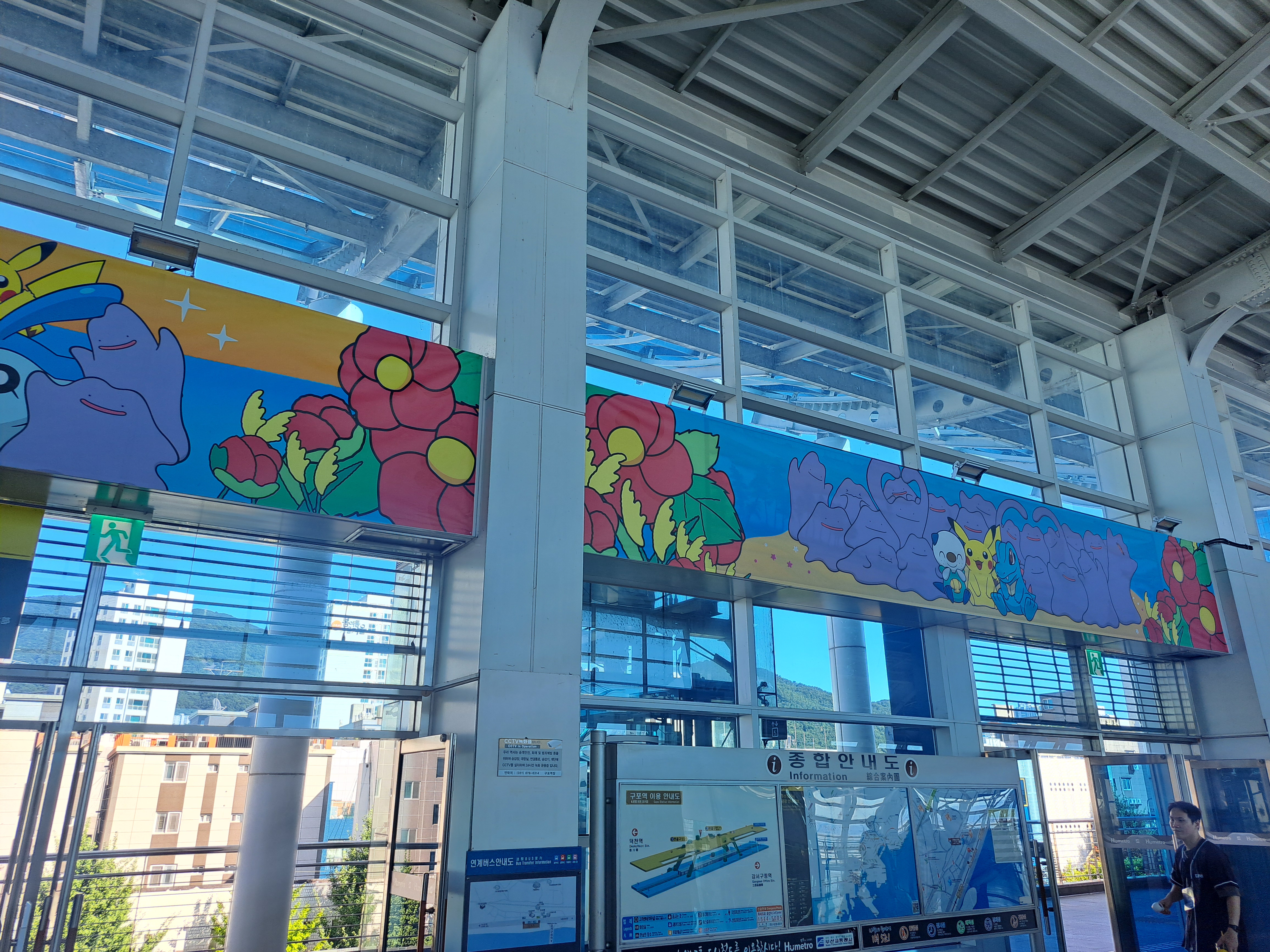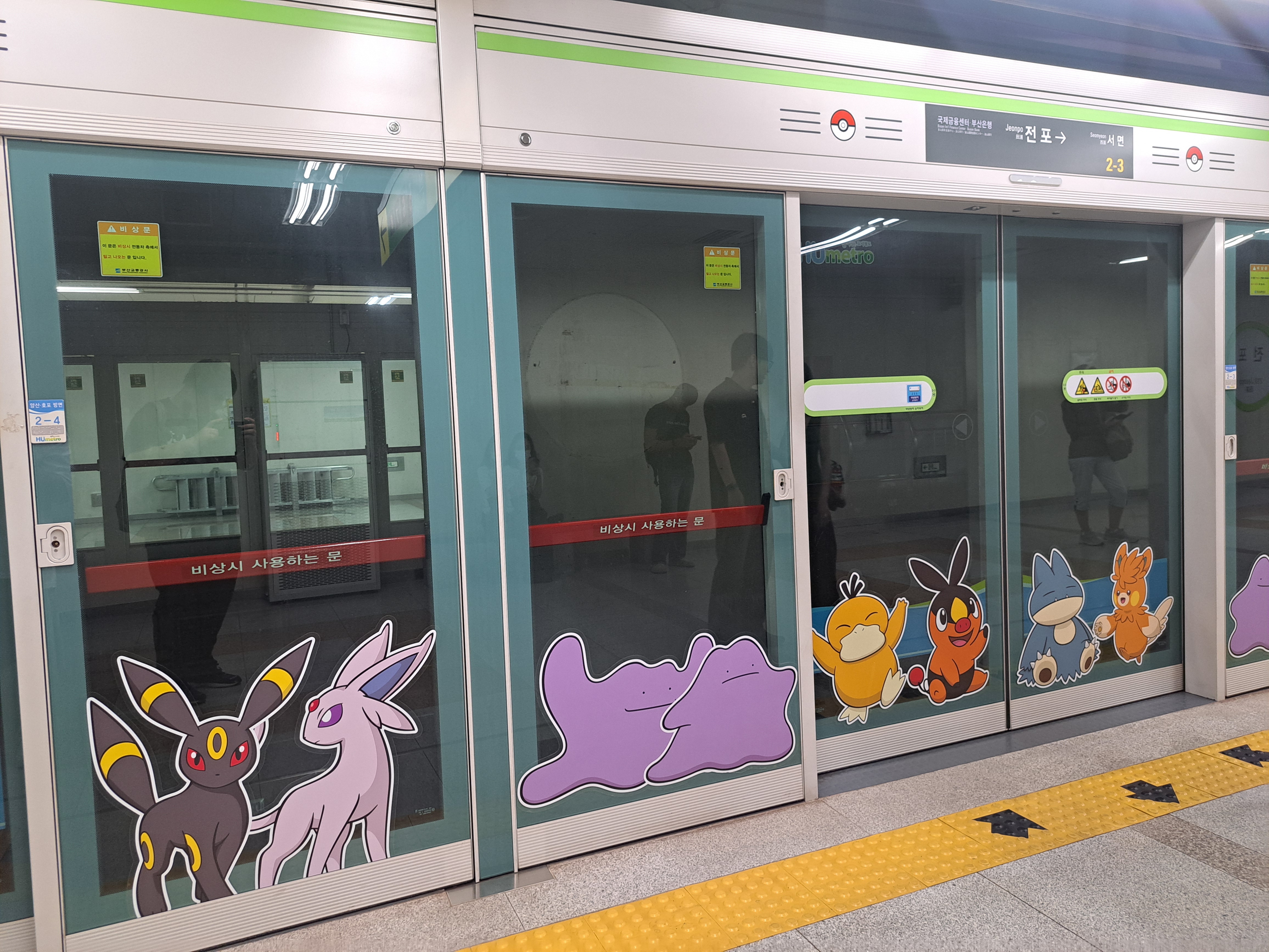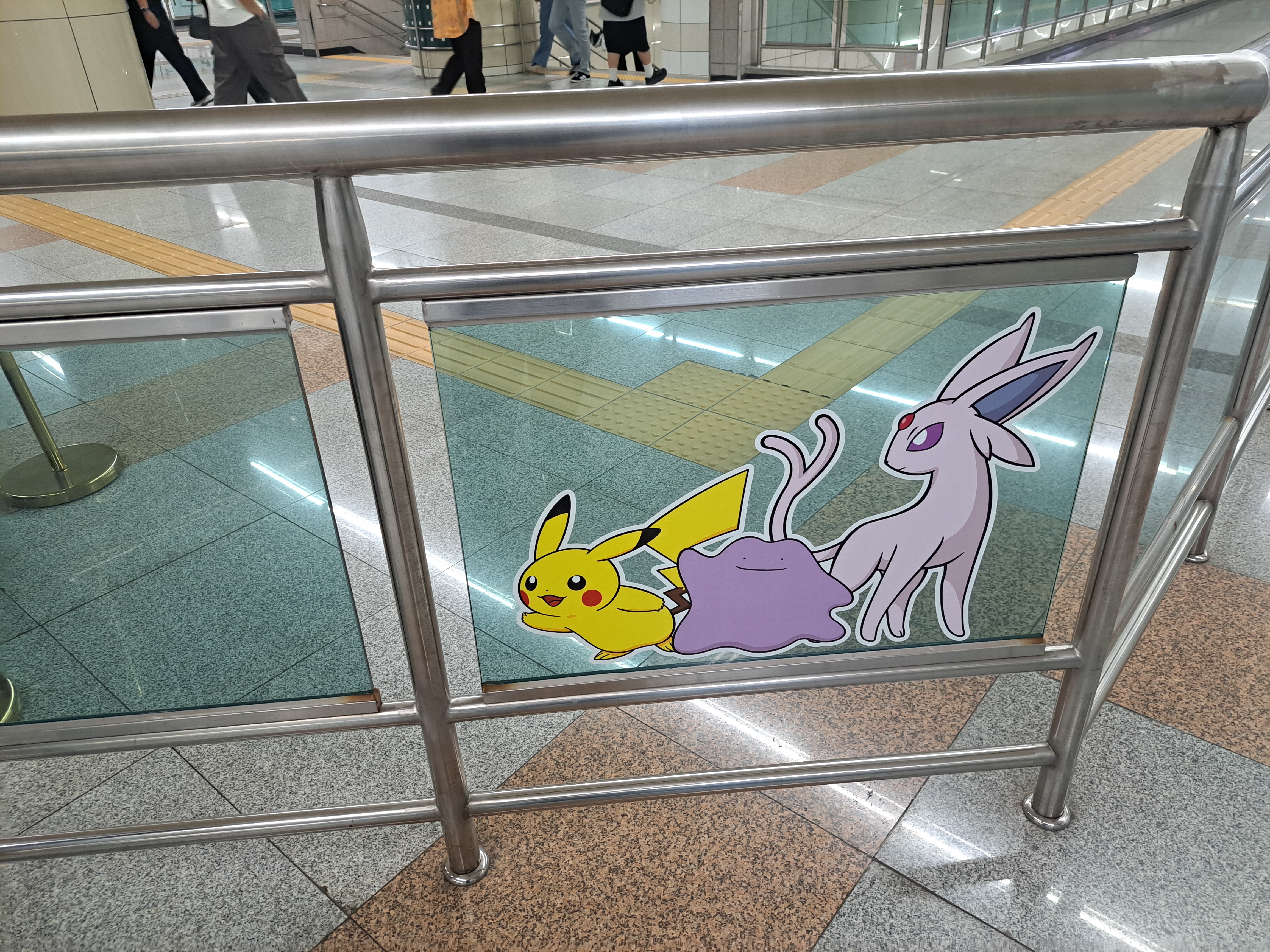 이렇게 승강장도 예쁘게 꾸며놨다. 아예 열차내부 자체를 포켓몬으로 랩핑한 열차도 있는 것 같은데 그건 못봤다.