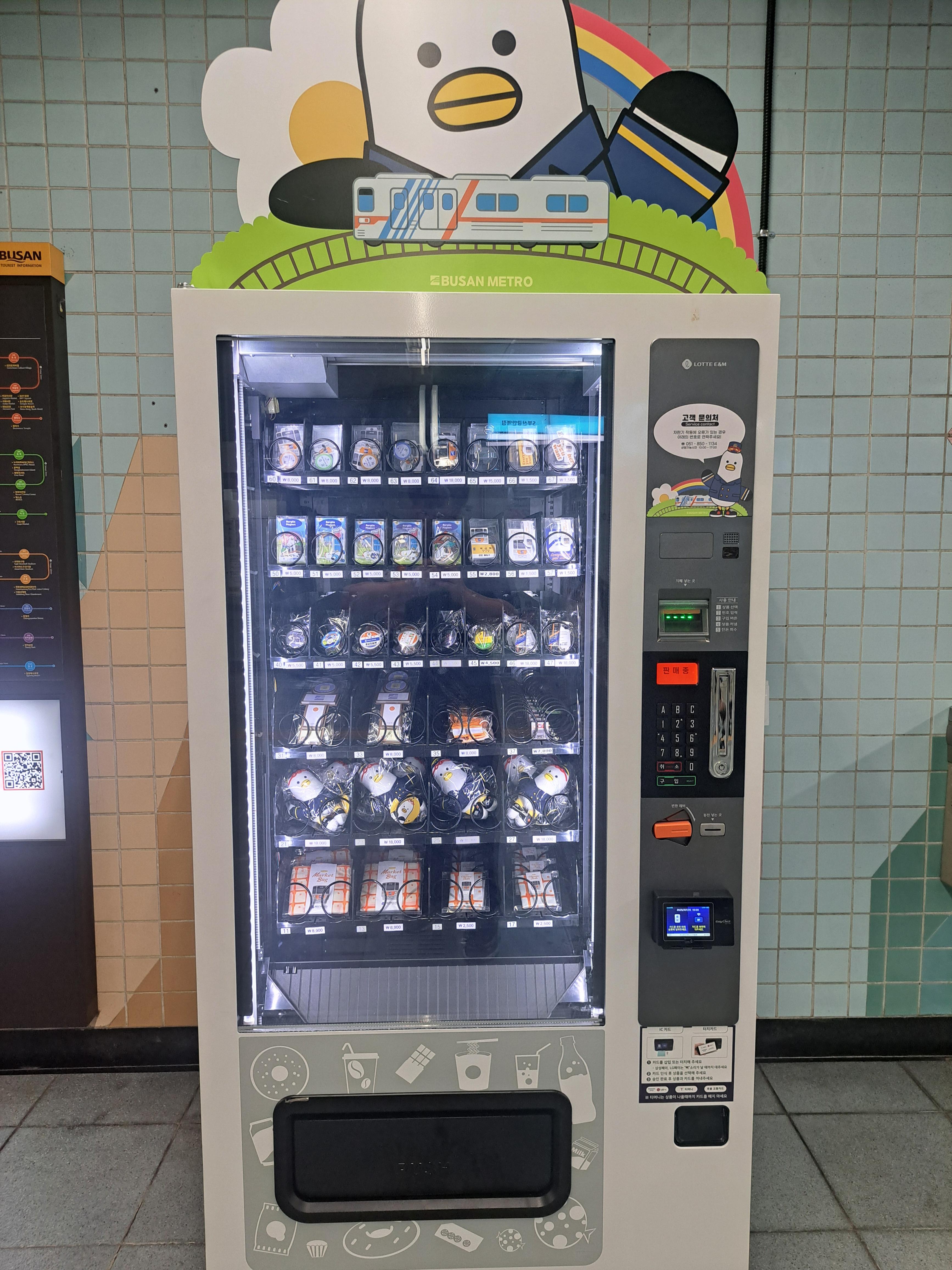 서면,범내골쪽엔 이게 없어서 몰랐는데 부산의 마스코트인 이상한 닭에 대한 굿즈를 파는 자판기가 있다.